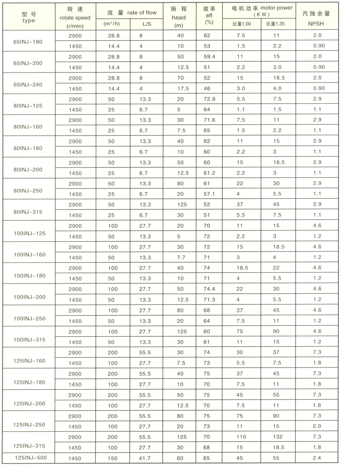 INJ型單級(jí)單吸濃漿化工泵該產(chǎn)品廣泛適用于各類(lèi)淀粉制取、制糖工藝、造紙工業(yè)和黑液輸送以及制藥、石油化工、合成纖維等行業(yè),可輸送溫度在0-150℃的含有纖維漿、顆粒及具有粘度的介質(zhì)。